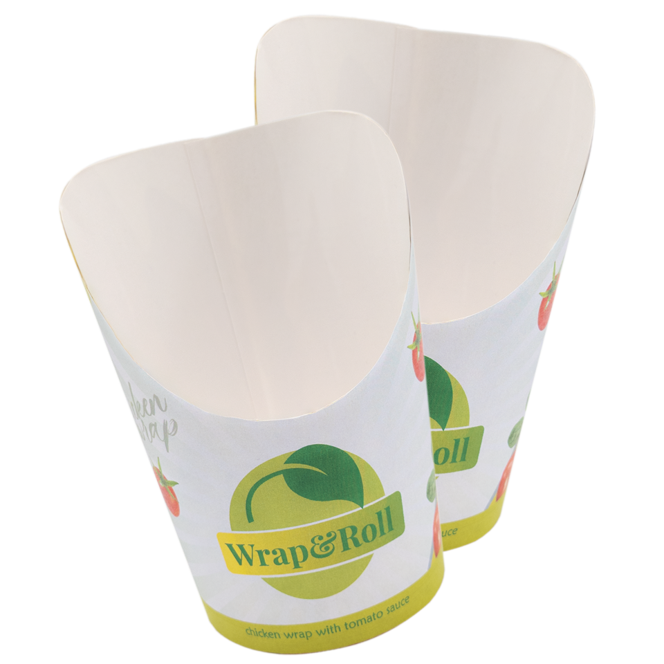 Scoop cups are versatile and suitable for wraps, fries, pancakes or other handheld snacks.