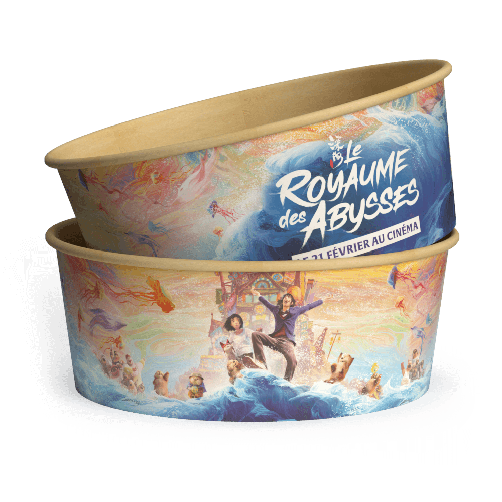 A savoir également, le blanc n’est pas une couleur que nous imprimons sur les gobelets, mais sur les barquette en carton rond qui sont en Kraft, nous pouvons effectuer un aplat blanc puis une impression couleur par la suite.