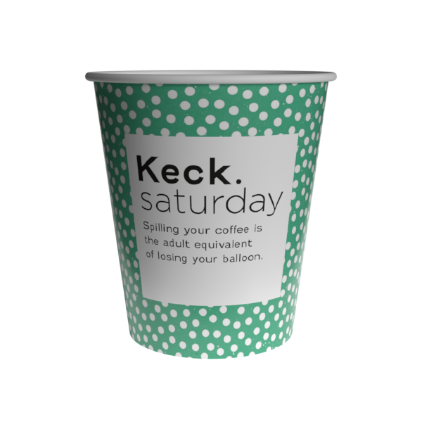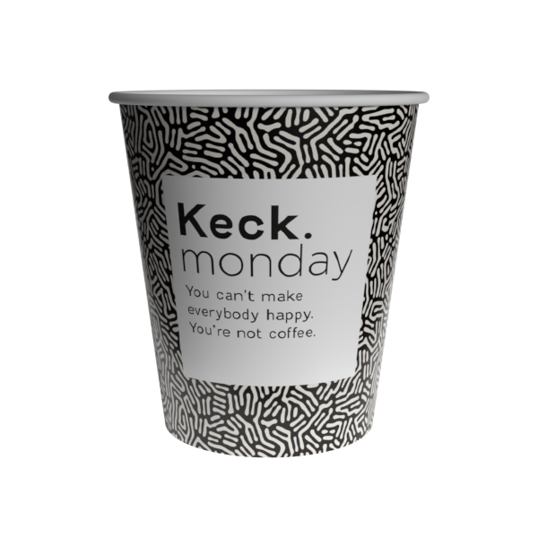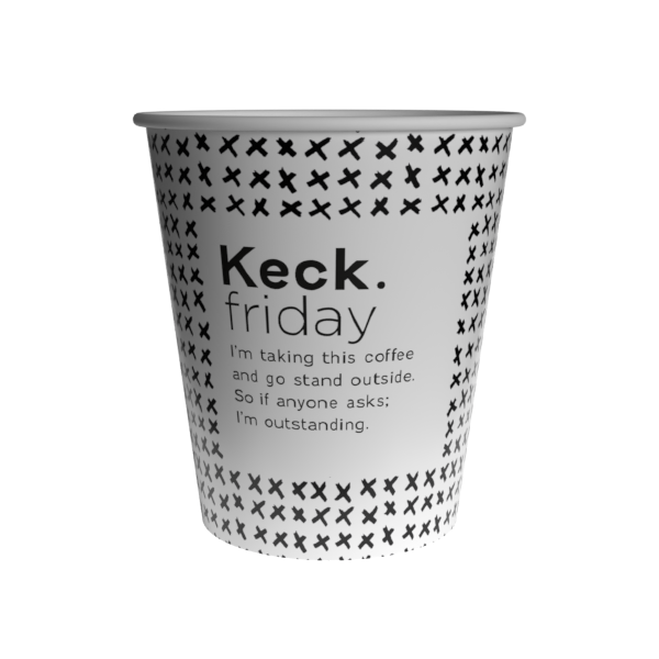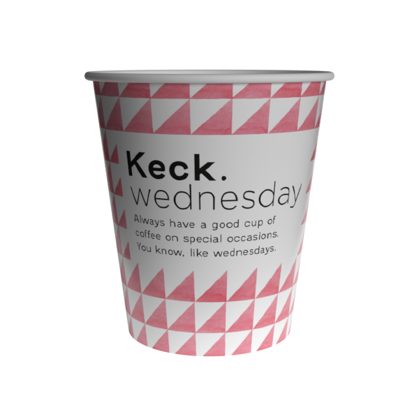 During the design phase of Keck's brand identity, a number of samples of coffee cups were created. The client couldn't and didn't want to choose (she even came up with more versions) and so we turned it into a collector's item.