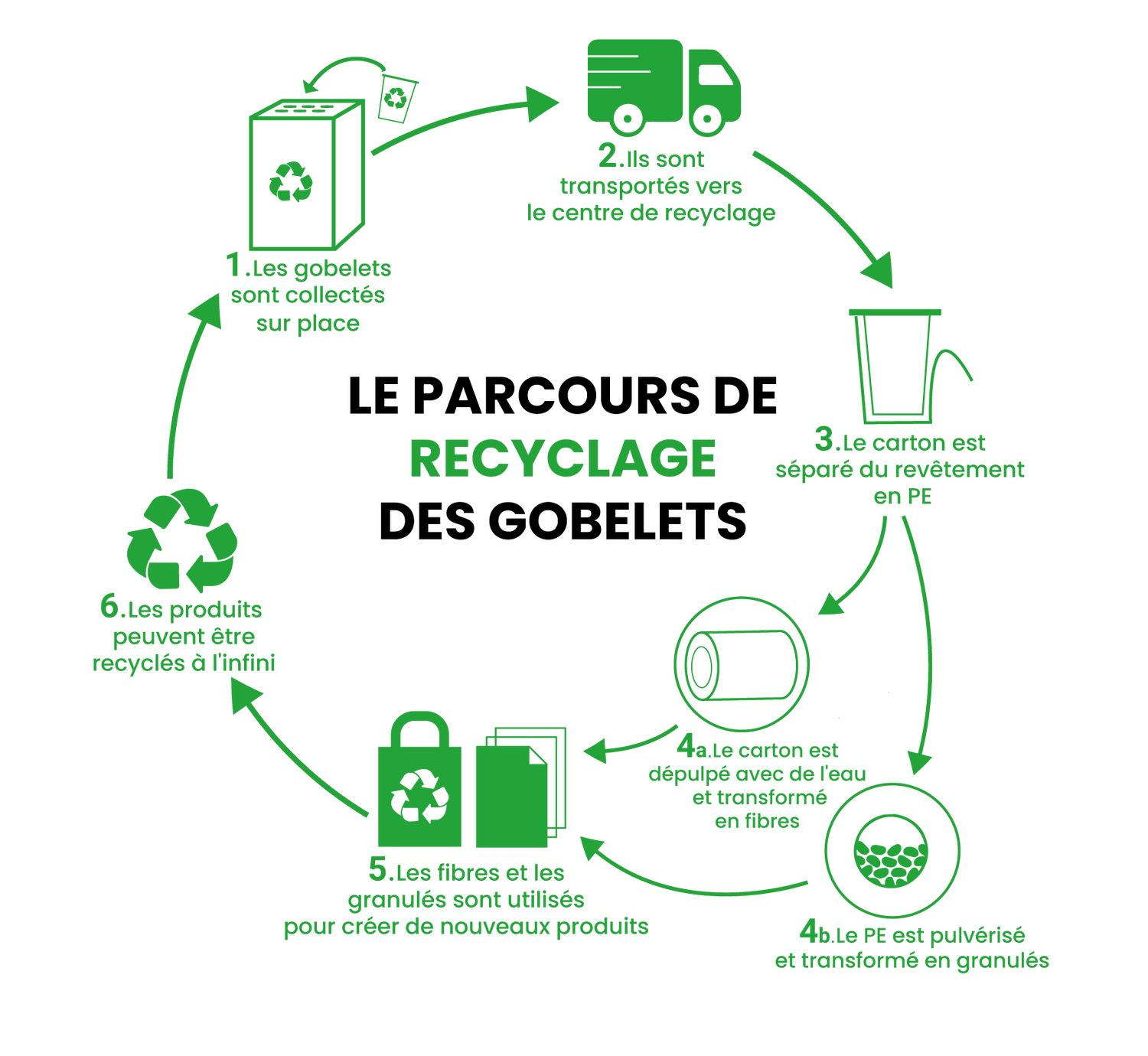 Pour les gobelets en particulier, le recyclage représente une réduction de 50 % des émissions.