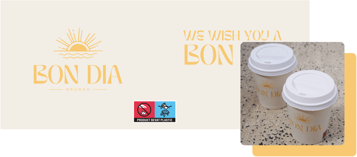 We wish you a Bon Dia! De achtergrond kleur past helemaal bij het logo en de sfeer die Bon Dia uit wil stralen.