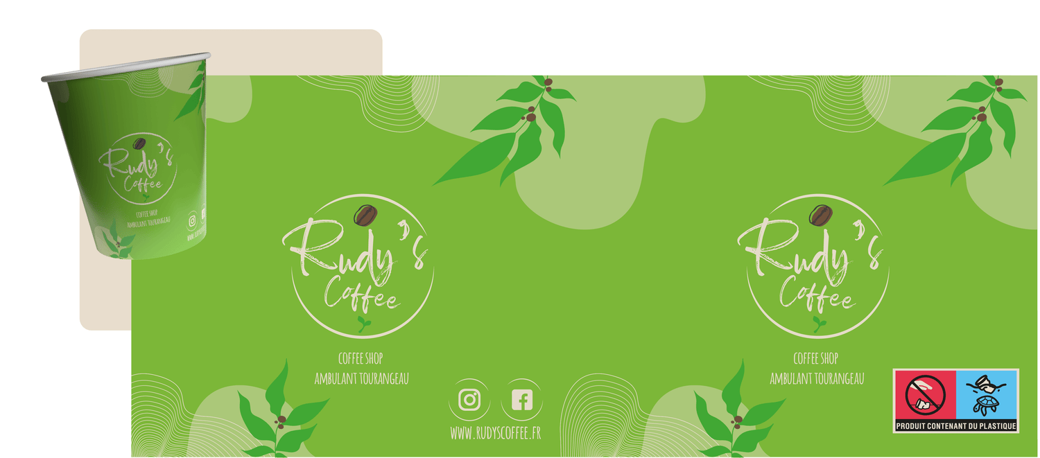Rudy’s Coffee zet in op duurzaamheid door zijn groene en dynamische ontwerp. Geniet verantwoord van je kopje koffie.